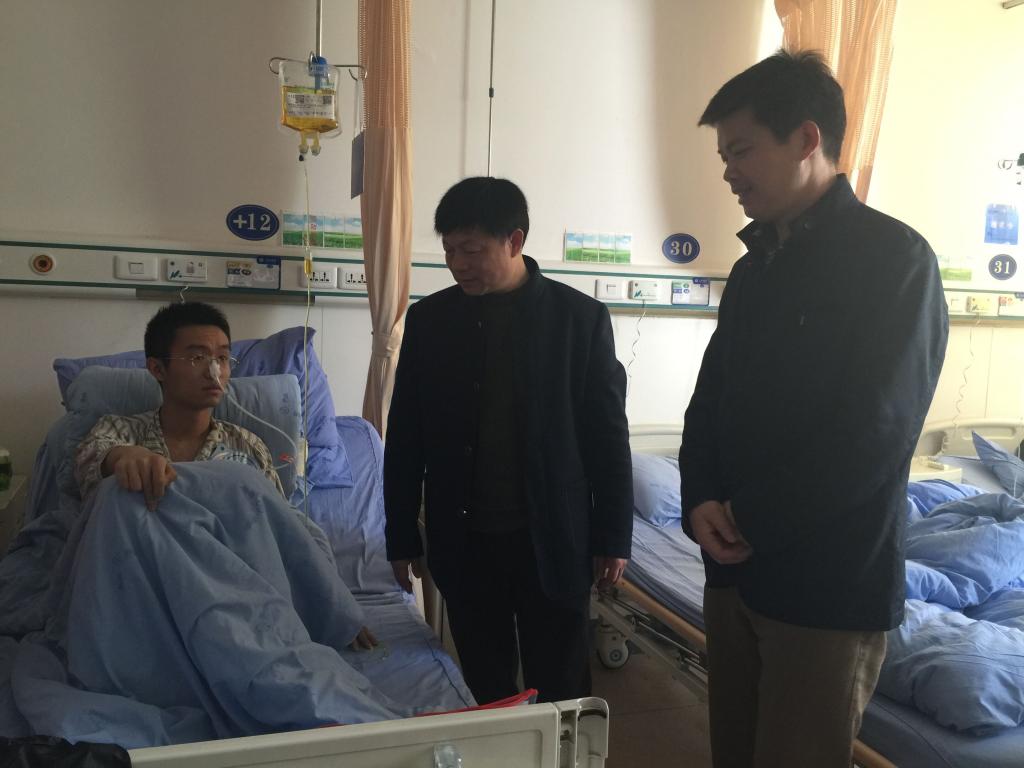 (通讯员 赵晓燕)4月7日,三院领导李贵华带领学工干部深入太和医院探望生病住院的学生,并代表学院给他送去慰问金。