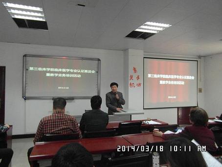 3月22日下午,第三临床学院在第三临床学院教学楼五楼教室成功召开临床专业认证工作推进会议,会议由分党委书记李贵华同志主持,三院全体领导,校教学督导专家吴绍光教授,各教研室、实验室、教研组负责人,教学秘书,人民医院科教处及三院教学办相关人员参加了会议。