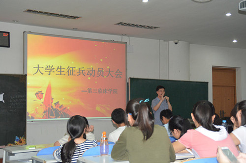 (通讯员 李芹)6月28日晚,第三临床学院在5112教室召开征兵动员大会,分党委副书记师贞明、学办负责人及校本部全体学生参加了本次大会。
